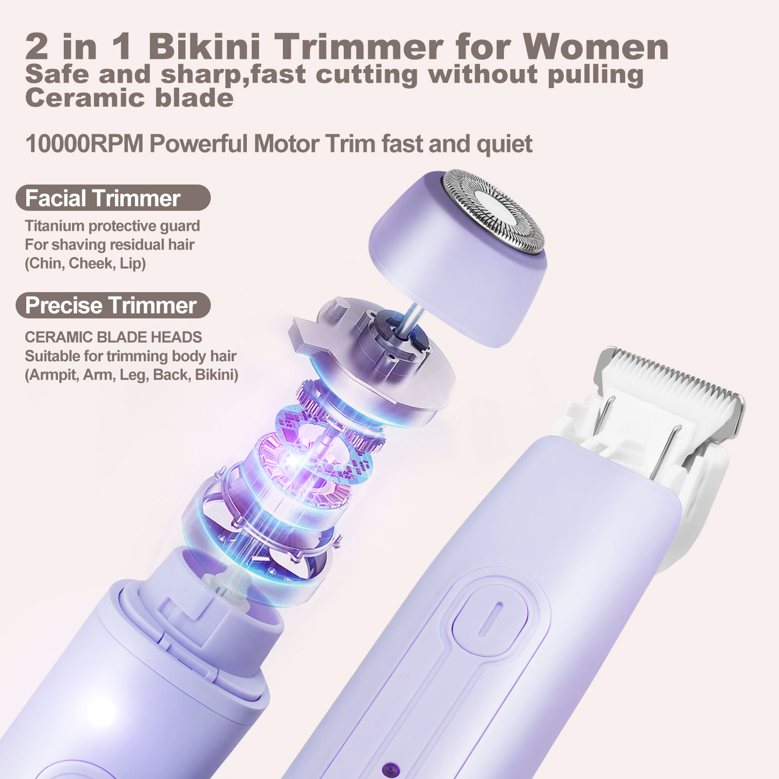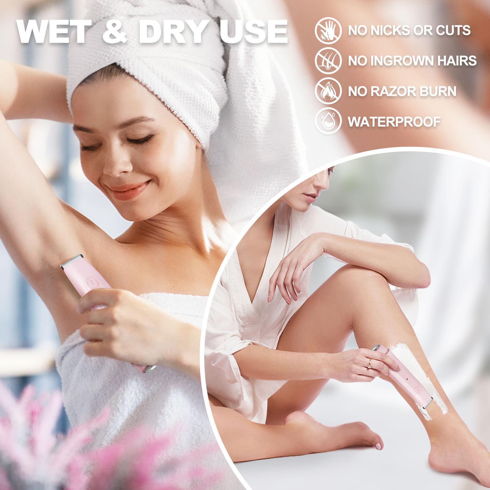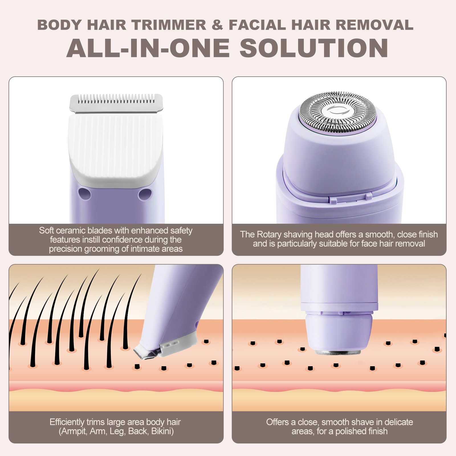 Dual Heads for Precise Hair Removal: The curved blade handles detailed areas like the face and lip area, while the ceramic blade targets large body parts (underarms, limbs). Independently controlled, they cover full-body hair removal needs.
