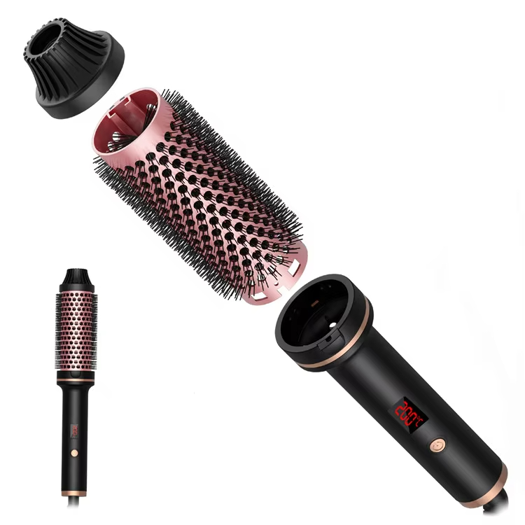 BH201 2025 Portable 3 in 1 PTC Ceramic Fast Heated Hair Curler Brush Volumizing Ceramic Hair Styling Tools Smoothing Brush With LCD