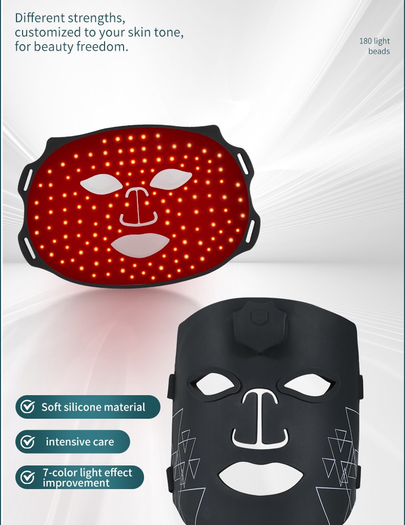 This beauty mask features 7-color spectrum care, with 180/240 densely arranged light beads that evenly illuminate the entire face for intensive skincare. Made of soft liquid silicone for a comfortable fit, it also supports wireless operation + Type-C charging, with one-touch control for easy and hassle-free use.