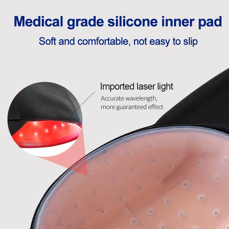 Comfortable & Secure Fit: Equipped with a medical-grade silicone inner pad—soft and non-slip, it fits tightly against the scalp to ensure even red light coverage across the head.
