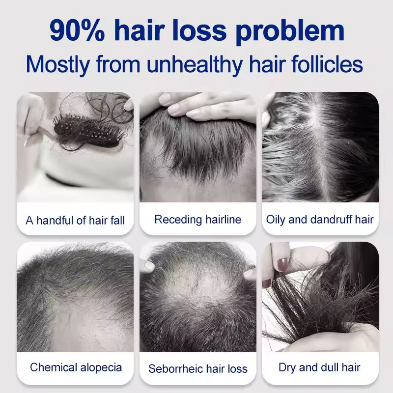 Multi-Effect Hair Improvement: Enhances cellular respiration, activates dormant follicles, and addresses 90% of common hair issues (e.g., hair loss, receding hairlines, oily/dandruff-prone hair, dry/frizzy strands).