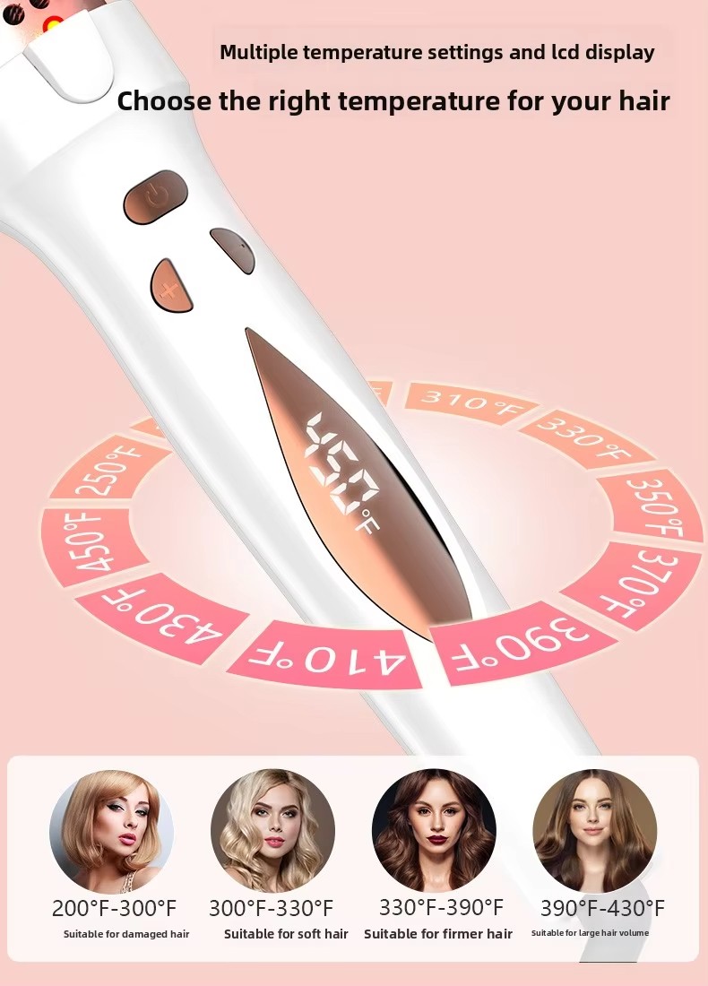 Multi-Temperature Settings with LCD Display: Featuring multiple temperature settings (ranging from 200°F to 430°F) and a clear LCD display, users can precisely select the ideal temperature for their specific hair type—whether damaged, fine, thick, or in need of extra volume—for personalized styling.