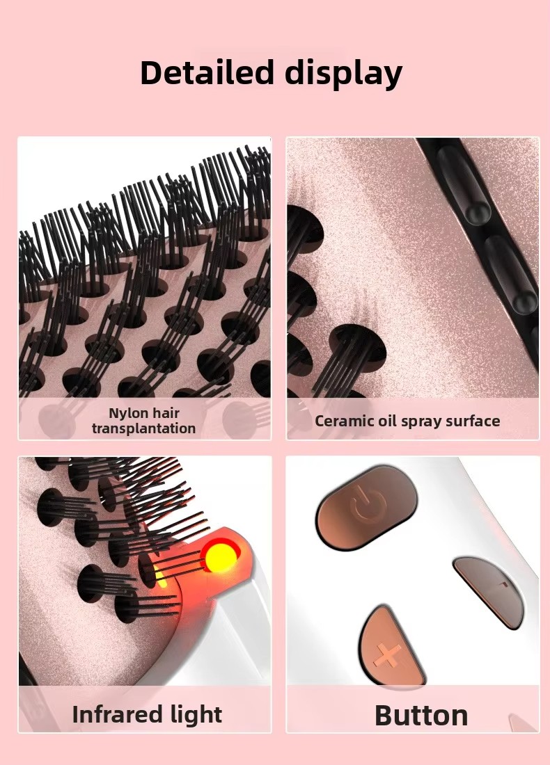 Equipped with multiple temperature settings and an LCD display, it allows precise temperature selection for different hair types: from 200°F–300°F for damaged hair to up to 430°F for voluminous styles. The 38mm wide-tooth brush design enables dual functionality for straightening and curling with ease. Infrared hair care and PTC constant temperature technology minimize heat damage while styling, leaving hair glossy, smooth, and effectively taming frizz.
